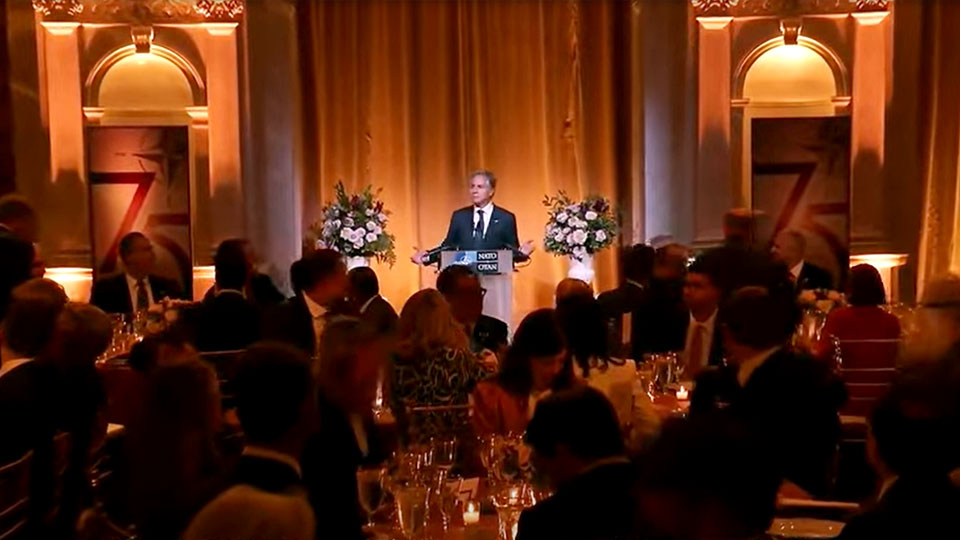 US Secretary of State Antony Blinken hosted a prestigious dinner for NATO allies and foreign ministers in attendance at the 75th Anniversary Celebratory Event of the three-day NATO Summit in Washington DC. Key diplomatic figures discussed important global issues and strengthened international relations.