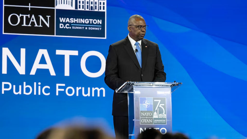 US Secretary of Defense Lloyd J. Austin delivered a speech at the NATO Summit, marking 75 years of the military alliance's strength and unity and the importance of the enduring commitment to collective defense and global security.