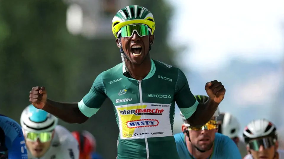 Professional cyclist Biniam Girmay won a third stage of the Tour de France, outsprinting his Belgian, French, and Slovenian rivals. Girmay became the first black African to win a stage on the Tour on the third day of this year's edition at Turin and was first again on stage eight.