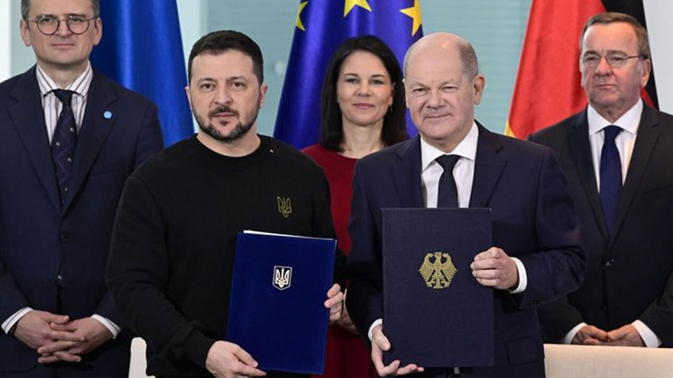 Making a whirlwind trip through Berlin and Paris, Ukrainian President Volodymyr Zelensky signs security pacts with the German Chancellor Olaf Scholz and French President Emmanuel Macron. The deal with Germany is worth €1.13 billion and focuses on air defense and artillery.