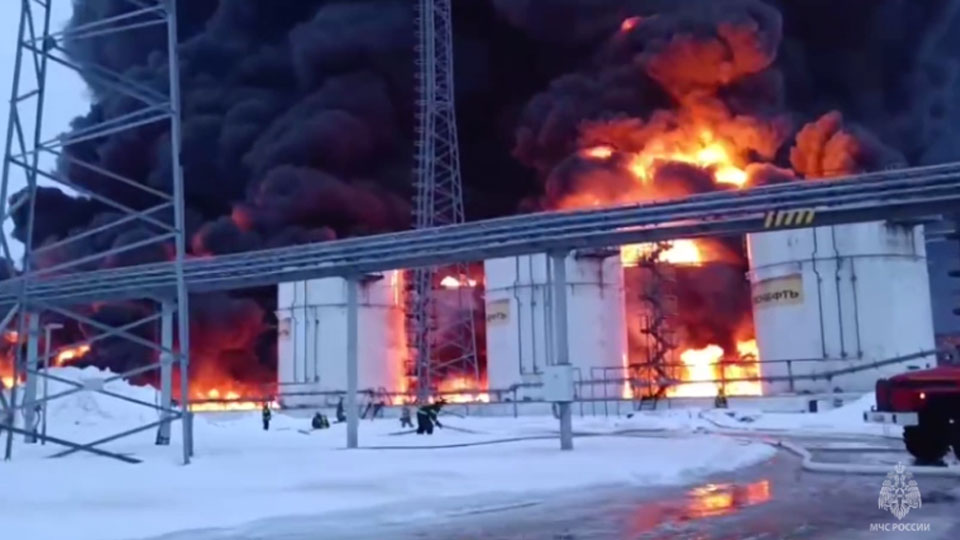 Ukraine launches a drone strike that sparked a huge inferno at an oil depot in the town of Klintsy in western Russia. As Kyiv called it 'fair' retaliation for Moscow’s strikes on Ukrainian energy infrastructure, the escalating cross-border attacks had a huge fireball tearing through the oil depot’s storage tanks, forming a black smoke cloud over the town.