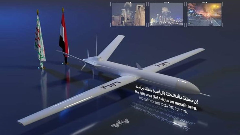 A Houthi-claimed drone seemingly shuttled off from Yemen in support of the Palestinian side in the Gaza War, presumably traveled up north through the Arabian peninsula (later traced as having flown in by way of Egypt and somehow 'unclassified as a threat'), passed through the infamous Israeli Iron Dome shield system that Iran's 350 ballistic missiles infamously could not penetrate early this year, and slammed into an apartment building in Tel Aviv, just a block from the U.S. Embassy Branch Office. Striking before dawn, the drone killed one man and wounded at least ten more civilians. Speculations over the mysterious feat suggest a Samad-3-type drone, while Houthis declare a Jaffa-type UAV (Unmanned Aerial Vehicle).