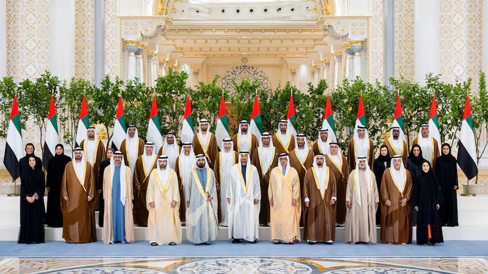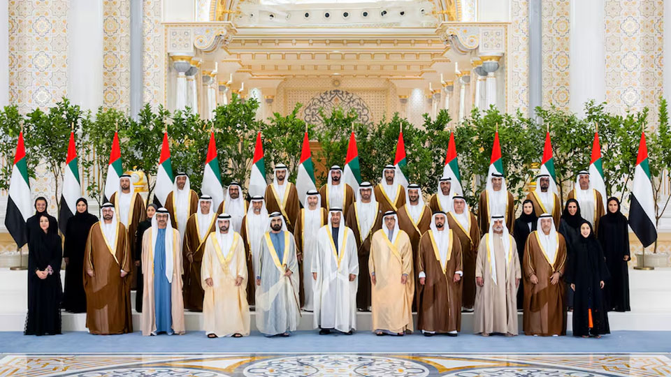 Newly appointed ministers were sworn in today before President H.H. Sheikh Mohamed bin Zayed Al Nahyan, in the presence of H.H. Sheikh Mohammed bin Rashid Al Maktoum, Vice President, Prime Minister, and Ruler of Dubai, and H.H. Sheikh Mansour bin Zayed Al Nahyan, Vice President, Deputy Prime Minister and Chairman of the Presidential Court. Taking the oath were H.H. Sheikh Hamdan bin Mohammed bin Rashid Al Maktoum, Crown Prince of Dubai, Deputy Prime Minister and Minister of Defence; and H.H. Sheikh Abdullah bin Zayed Al Nahyan, Deputy Prime Minister and Minister of Foreign Affairs; and other newly appointed ministers in the UAE Cabinet.