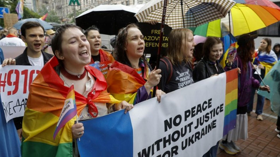 Supporters of LGBTQ+ rights, including soldiers serving in the Ukrainian military, marched through Kyiv in the Ukrainian capital's first Pride March since Russia's full-scale invasion more than two years ago.