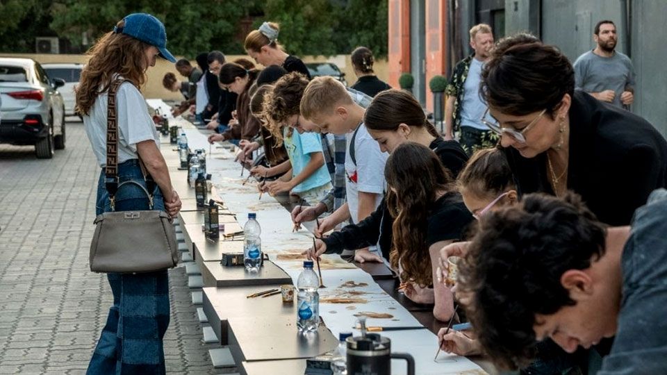 Dozens of artists "brewed up" a 70-metre painting with coffee in a live event in Dubai. As many as 41 artists of 14 nationalities took part in the making of the mammoth canvas in what was titled the "Coffee Art Marathon".