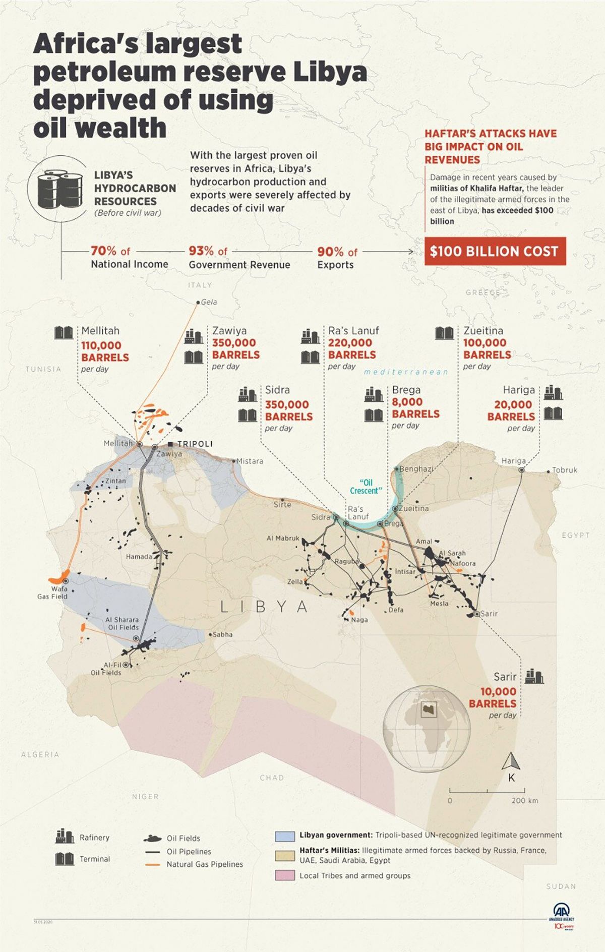 Libya’s internationally-unrecognized eastern-based government is shutting down oilfields in response to “attacks on the leadership and employees of the Central Bank of Libya”, its prime minister, Osama Hammad, says. The “force majeure” applies to all fields, terminals, and oil facilities.
