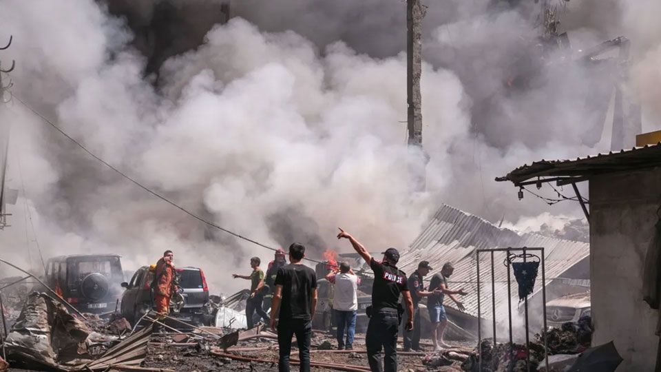 Yerevan, the capital city of Armenia, was shaken by an explosion in the Nor Aresh neighborhood of Yerevan's Erebuni district, leaving at least 2 killed. Eyewitnesses and preliminary data suggest that the explosion was severe enough to cause the collapse of one or two houses, leaving an aftermath of chaos and uncertainty.