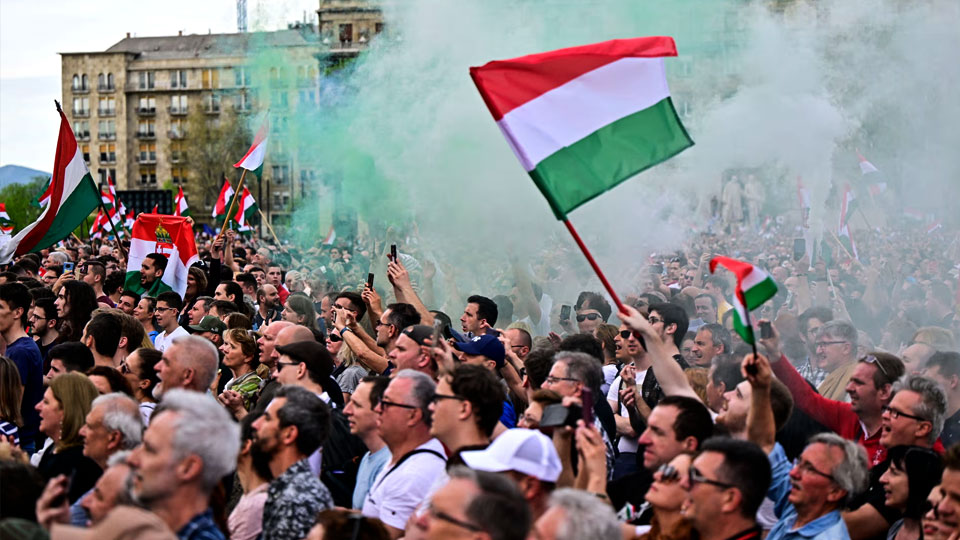Tens of thousands protested against the government of Viktor Orban in downtown Budapest on Saturday, led by Peter Magyar, a lawyer formerly close to the administration who recently launched a political movement that aims to challenge the prime minister. Protesters marched to parliament shouting "We are not scared" and "Orban resign!".