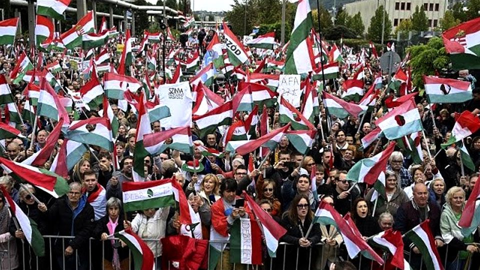 Thousands of protesters gathered outside the headquarters of Hungary's public media corporation to demonstrate against what they say is a propaganda network operated by the nationalist government at the taxpayer's expense. The protest was organized by Hungary's most prominent opposition figure, Péter Magyar who heads the TISZA party, which has emerged in recent months as the most serious political challenge for Prime Minister Viktor Orbán since he took power nearly 15 years ago.