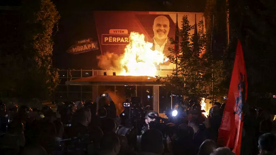 Clashes broke out in Tirana between police and opposition protesters seeking that longtime leftist Prime Minister Edi Rama resign, leaving 10 officers injured. A few thousand people gathered in the capital at demonstrations organized by the country's right-wing opposition. Scuffles first broke out in front of the government building when demonstrators tried to break through a police cordon and some of them threw Molotov cocktails.