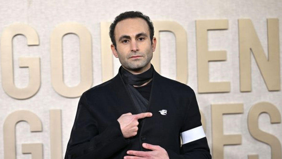 Arab stars hit the red carpet at the Golden Globe Awards ceremony where British actor Khalid Abdalla, renowned for his portrayal of Dodi Fayed in "The Crown" wears a Bethlehem dove pin to demand a permanent ceasefire in Gaza.