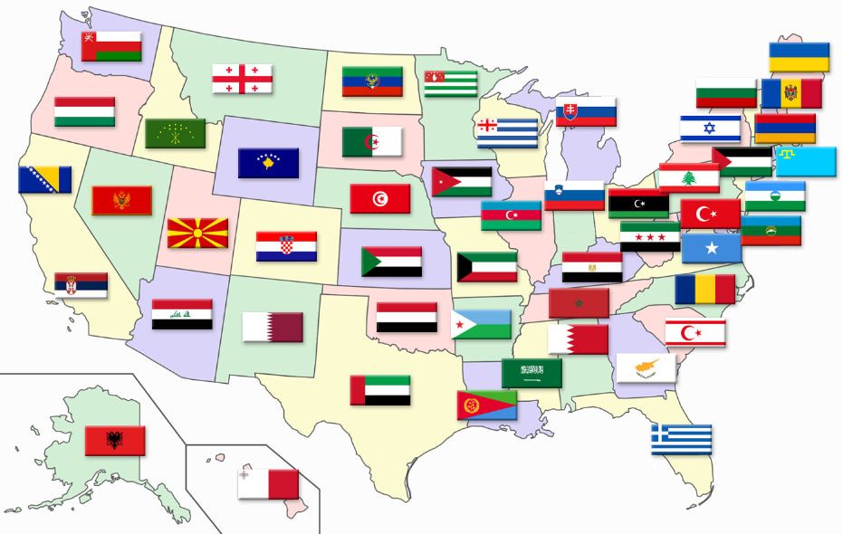 The approximation of 52 USO states with 52 USA states seems to be as follows: